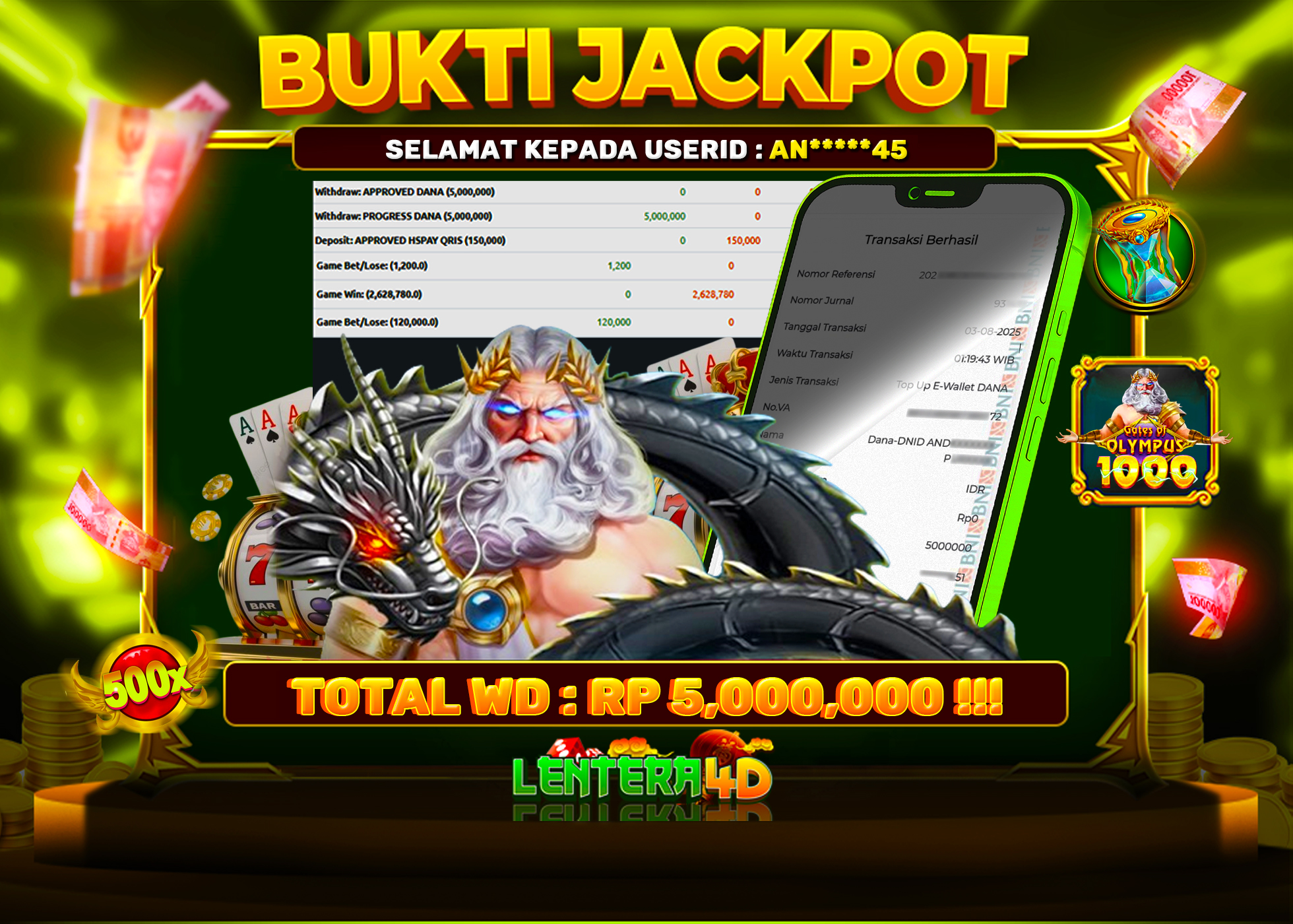 Lentera4D dikenal sebagai situs terpercaya yang selalu menghadirkan pengalaman bermain slot online yang aman, fair, dan berlisensi resmi. Di sini, kami tidak hanya sekadar memberikan janji, tapi bukti nyata berupa slip kemenangan yang dapat Anda lihat secara langsung.
