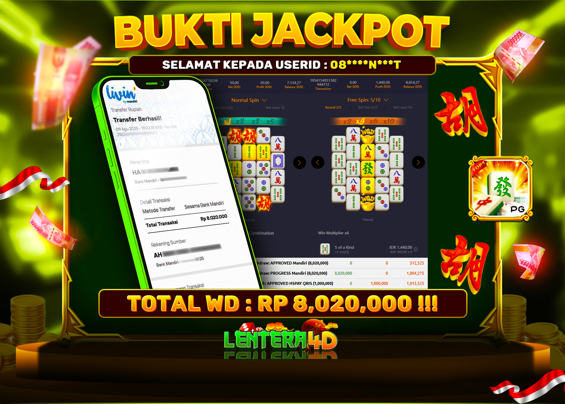 TOTAL KEMENANGAN : Rp 8.020.000,-