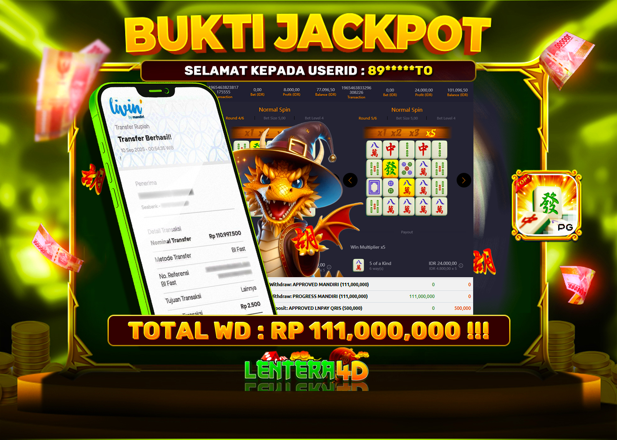 Lentera4D dikenal sebagai situs terpercaya yang selalu menghadirkan pengalaman bermain slot online yang aman, fair, dan berlisensi resmi. Di sini, kami tidak hanya sekadar memberikan janji, tapi bukti nyata berupa slip kemenangan yang dapat Anda lihat secara langsung.