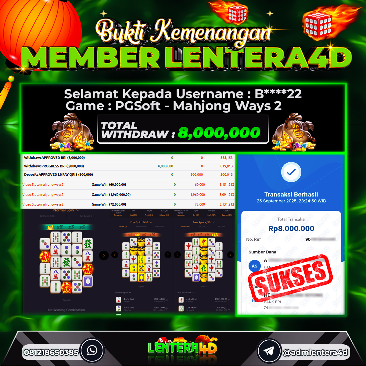TOTAL KEMENANGAN : Rp 8.000.000,-
