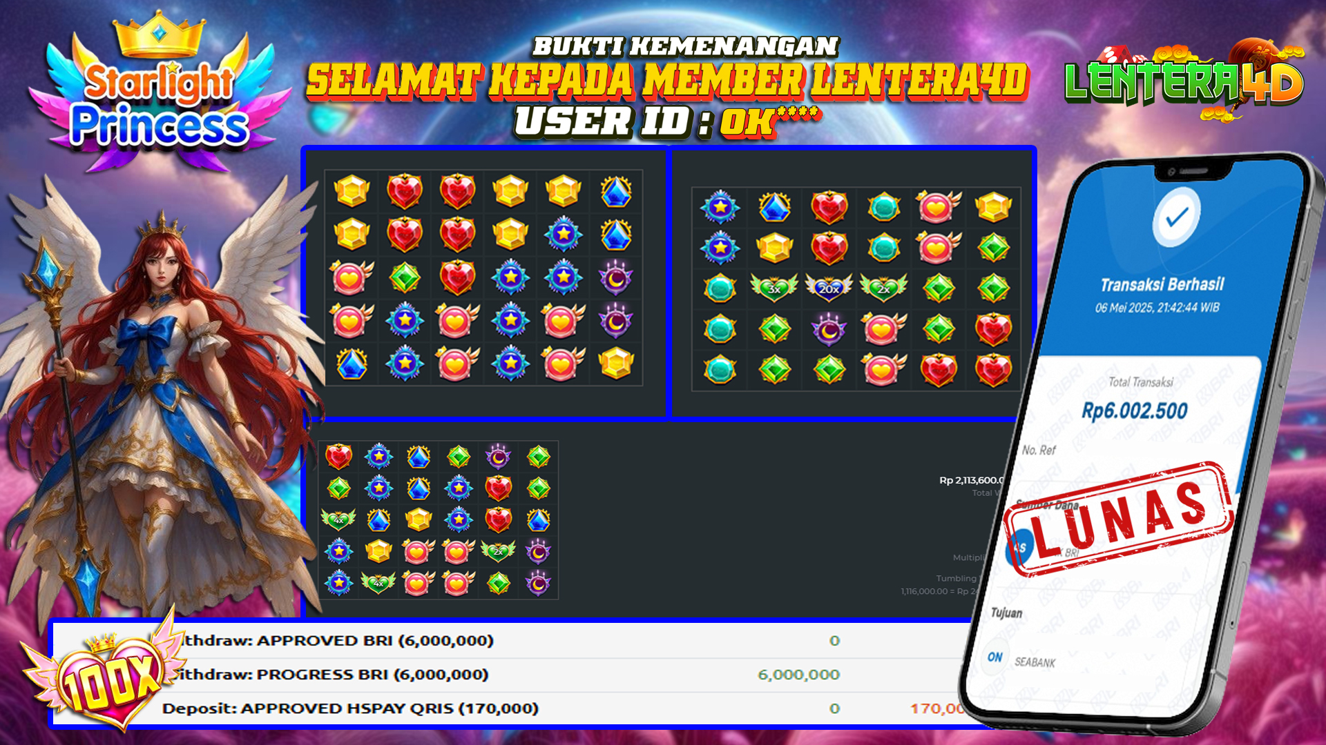 JACKPOT STARLIGHT PRINCESS 07 MEI 2025, Jackpot Slot Gacor, Kemenangan Slot, Bukti Kemenangan Slot, Kemenangan Slot Pragmatic Play, Menang Slot online, Slot Gacor, Situs Aman Terpercaya, WD Berapapun Pasti DI Bayar Tuntas, Maxwin Slot Online.