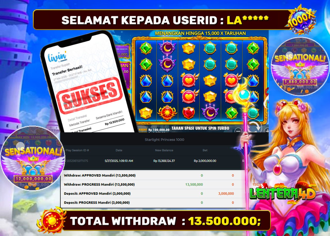 JACKPOT MAIN STARLIGHT PRINCESS 1000 27 MEI 2025