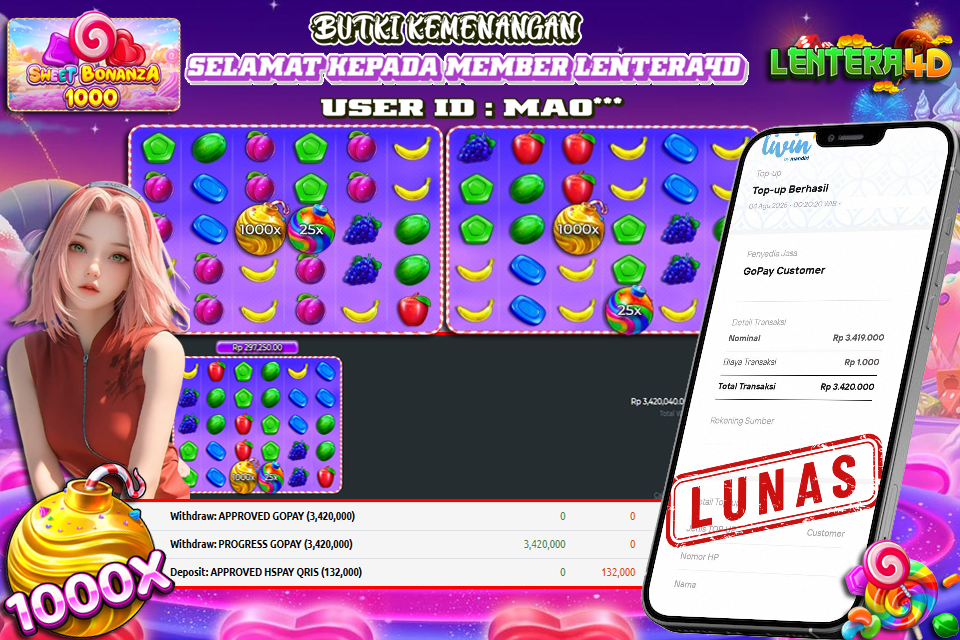 JACKPOT SWEET BONANZA 1000 04 AGUSTUS 2025, Jackpot Slot Gacor, Kemenangan Slot, Bukti Kemenangan Slot, Kemenangan Slot PRAGMATIC PLAY, Menang Slot online, Slot Gacor, Situs Aman Terpercaya, WD Berapapun Pasti DI Bayar Tuntas, Maxwin Slot Online.