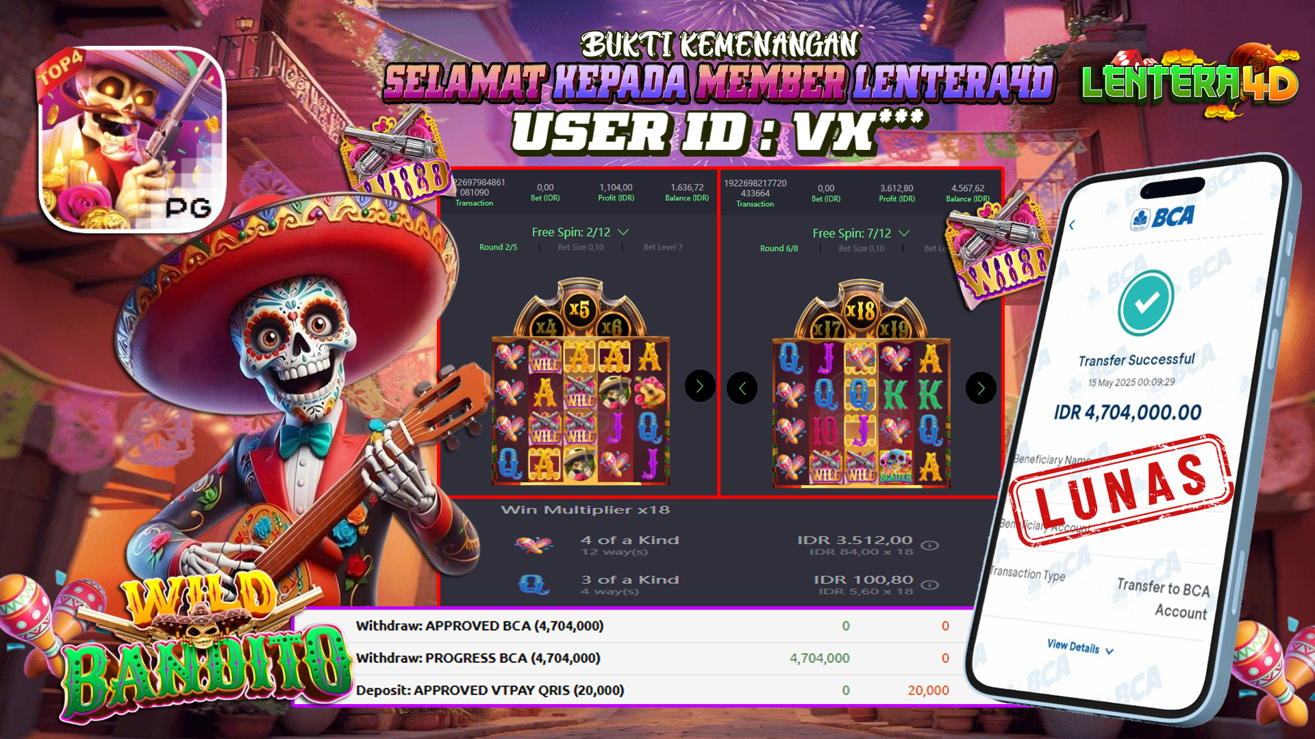 JACKPOT WILD BANDITO 15 MEI 2025, Jackpot Slot Gacor, Kemenangan Slot, Bukti Kemenangan Slot, Kemenangan Slot PG SOFT, Menang Slot online, Slot Gacor, Situs Aman Terpercaya, WD Berapapun Pasti DI Bayar Tuntas, Maxwin Slot Online.